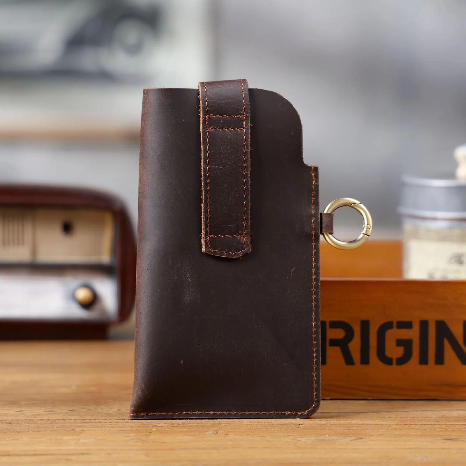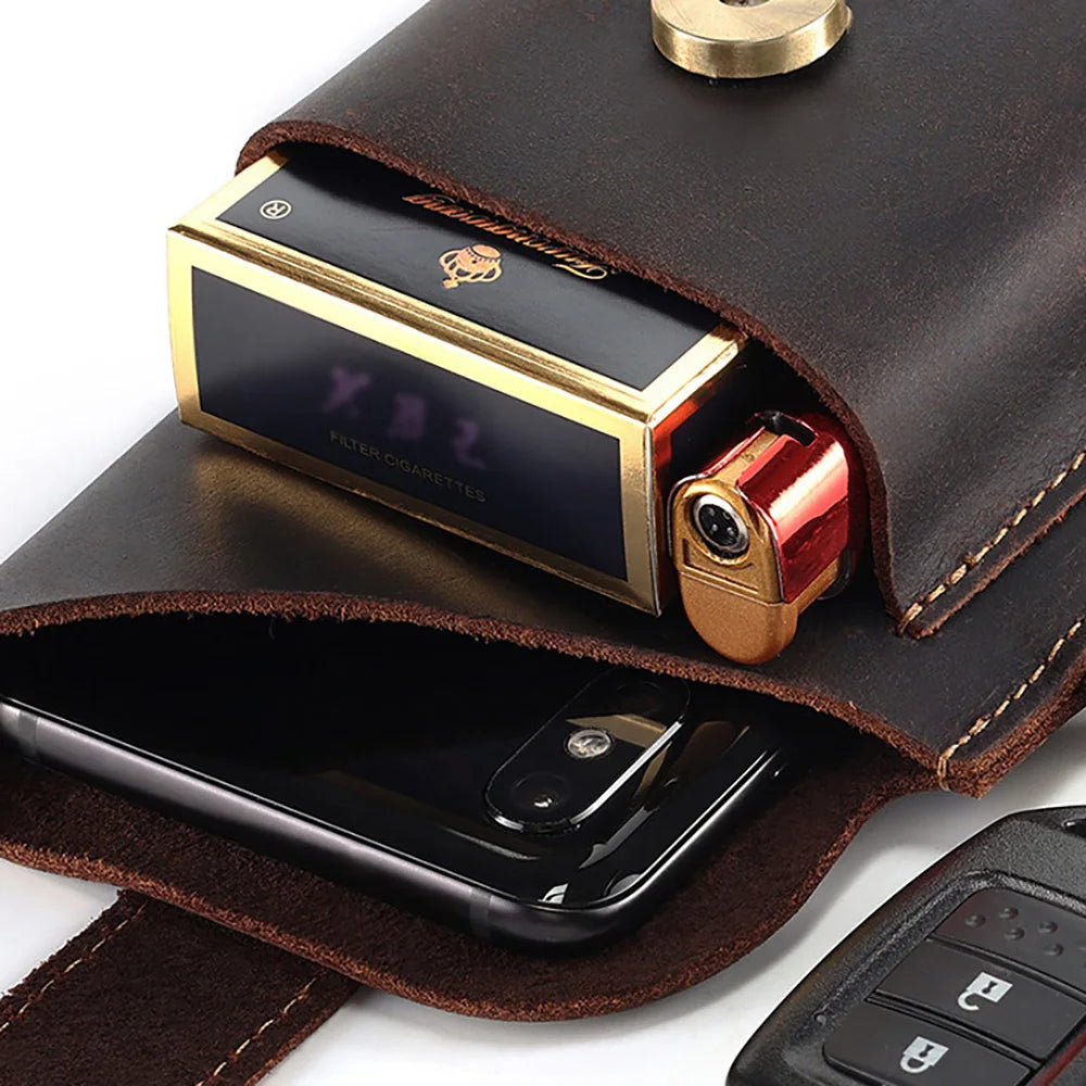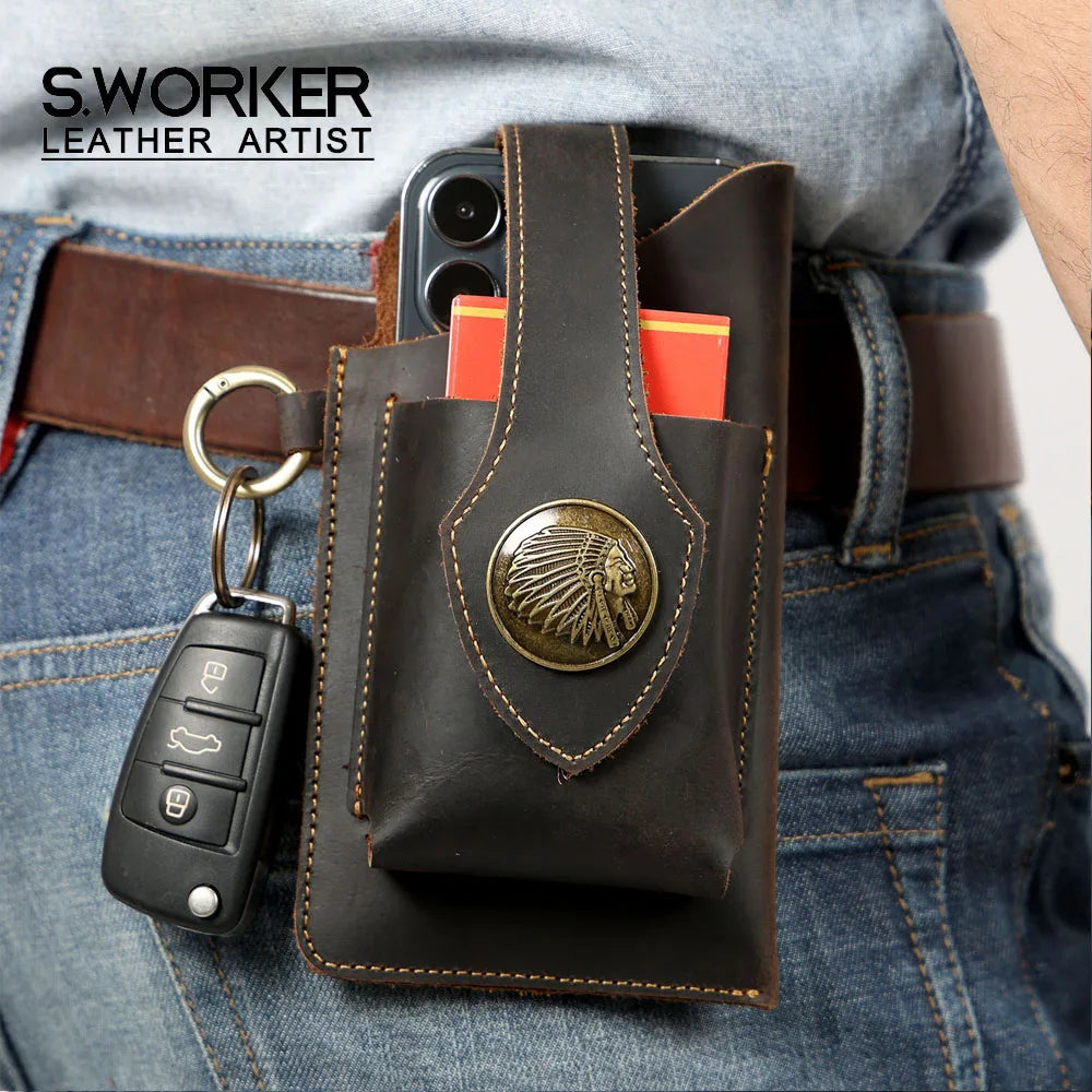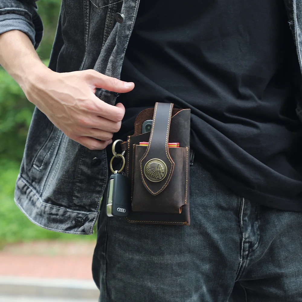 Vintage Genuine Leather Waist Bag Cellphone Loop Holster Mens Belt Bag Phone Pouch Wallet Phone Case