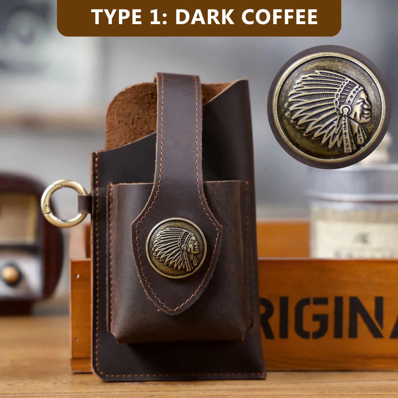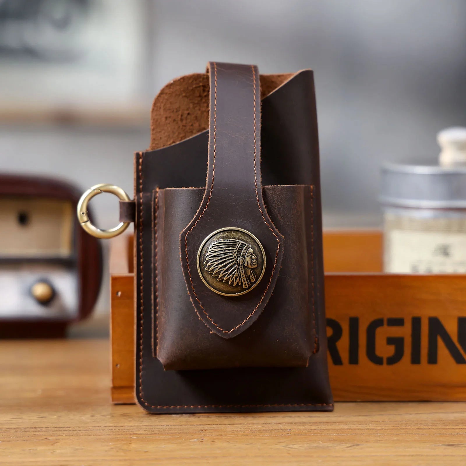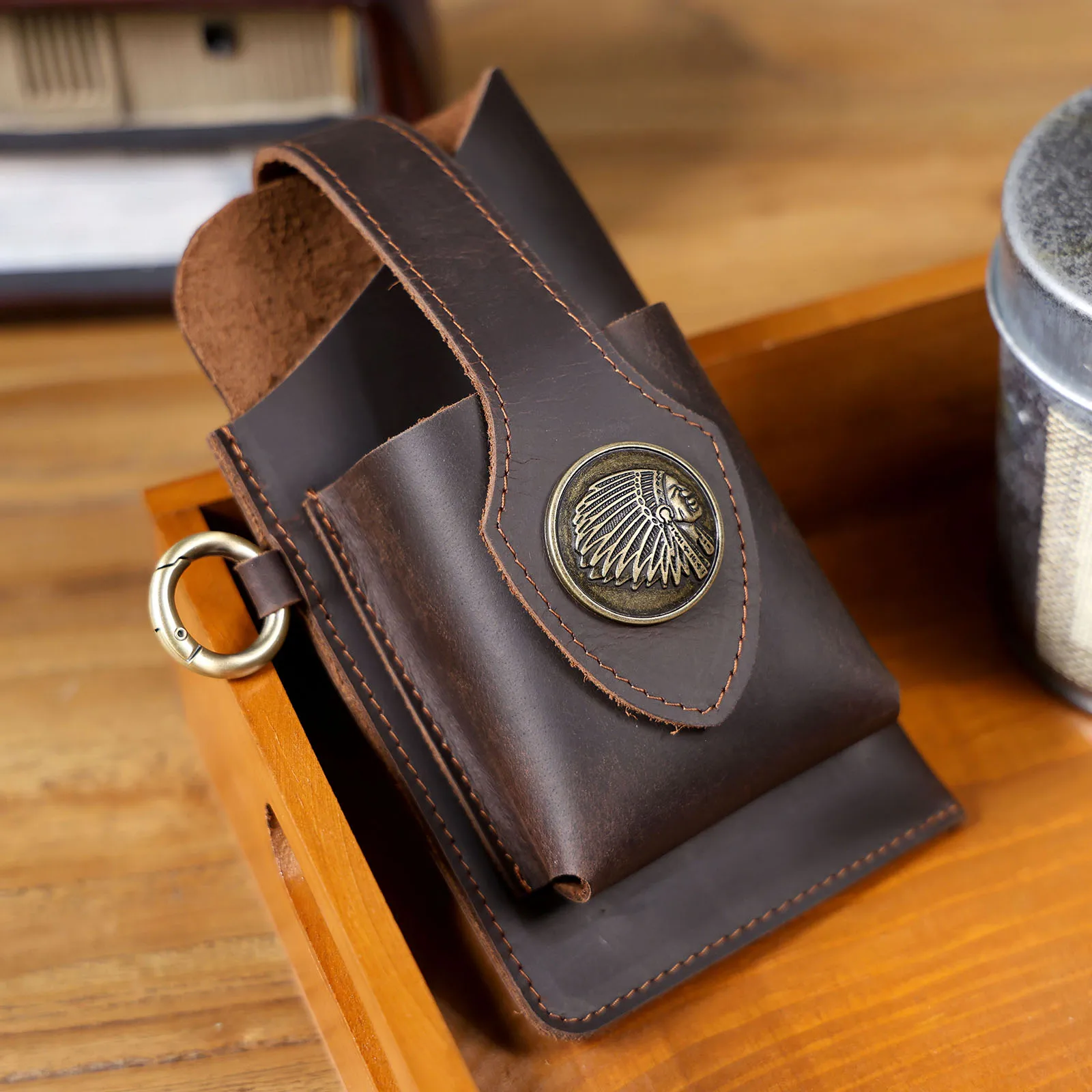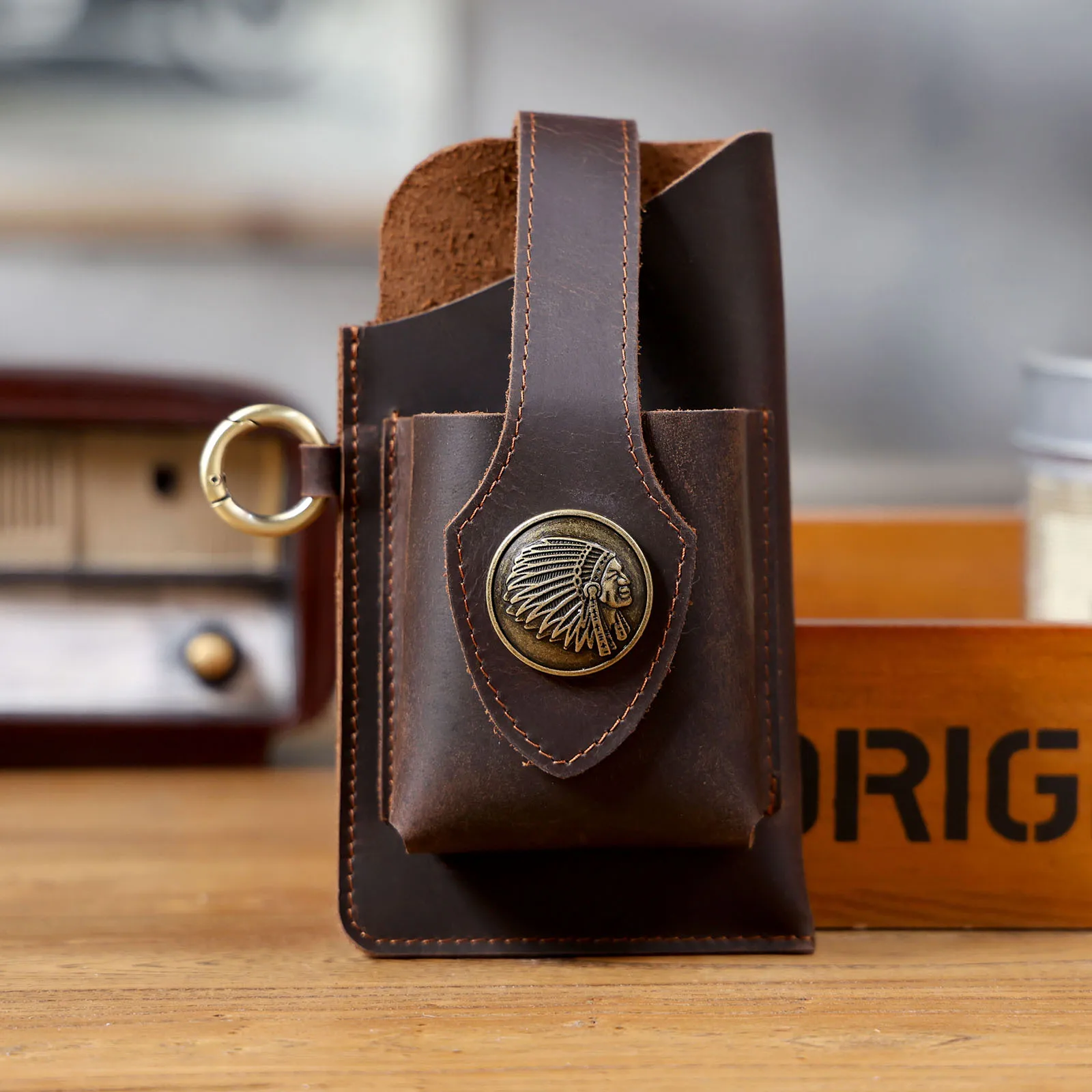 Vintage Genuine Leather Waist Bag Cellphone Loop Holster Mens Belt Bag Phone Pouch Wallet Phone Case