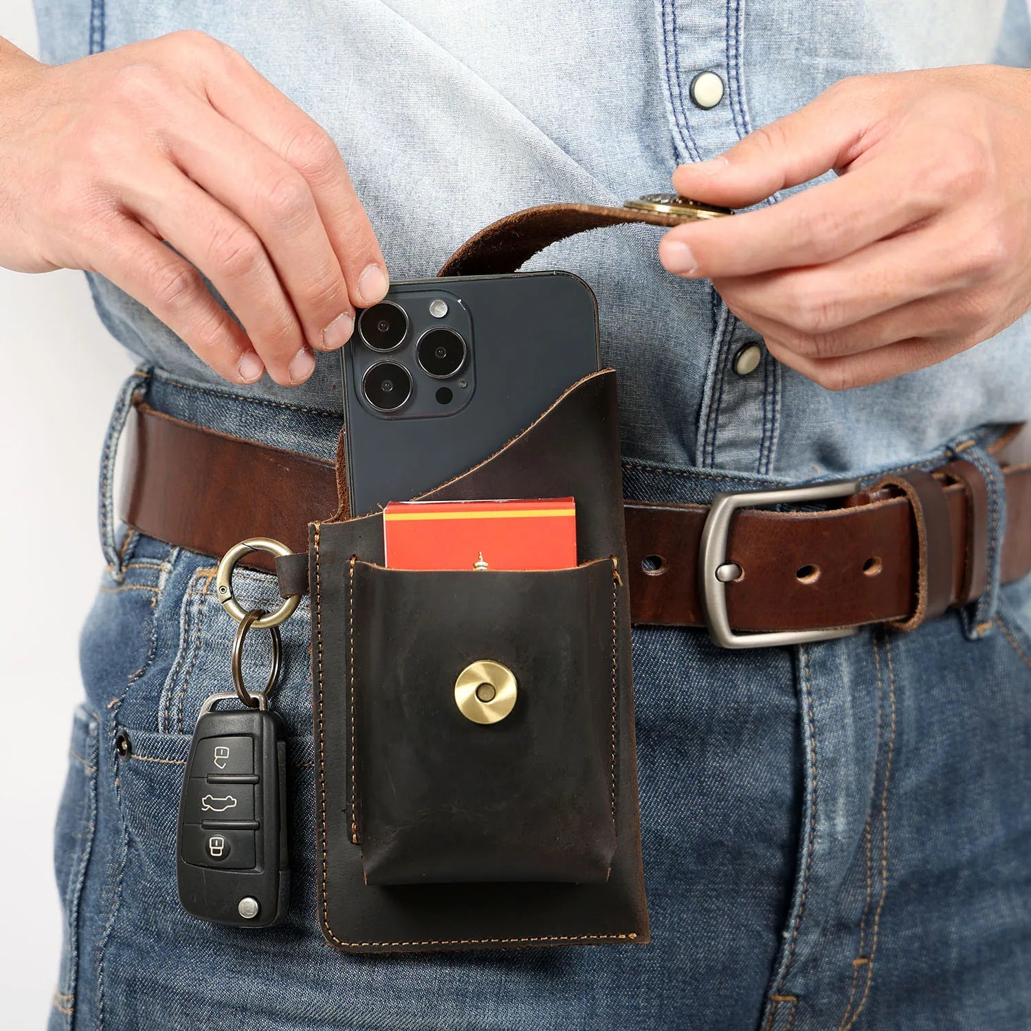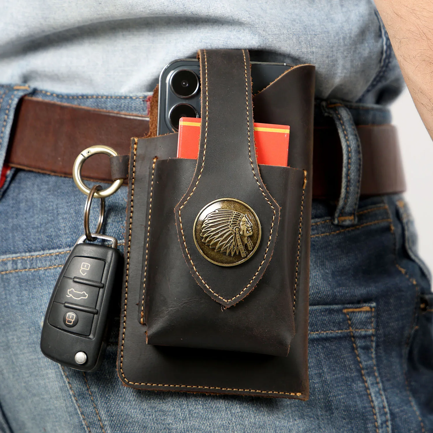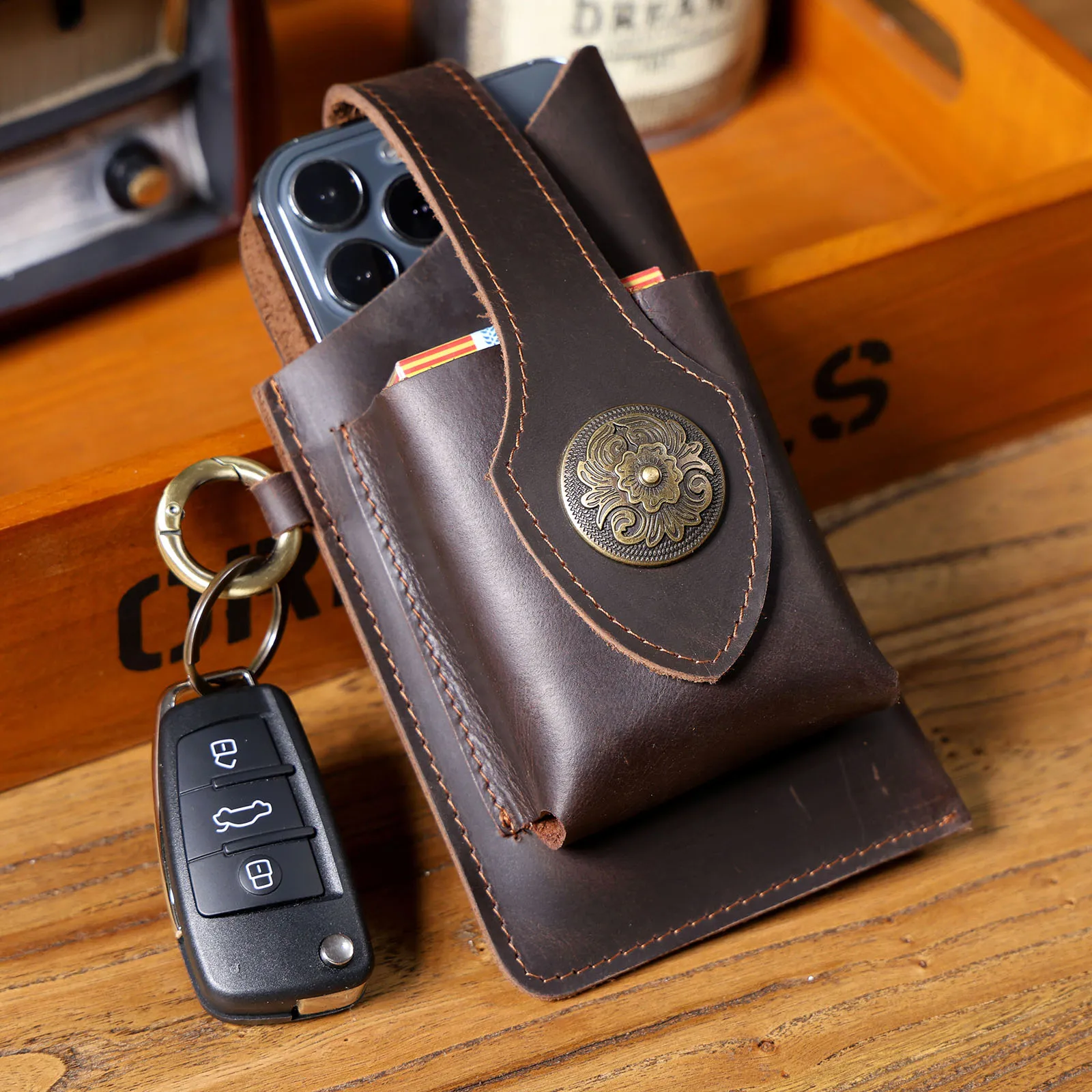 Vintage Genuine Leather Waist Bag Cellphone Loop Holster Mens Belt Bag Phone Pouch Wallet Phone Case